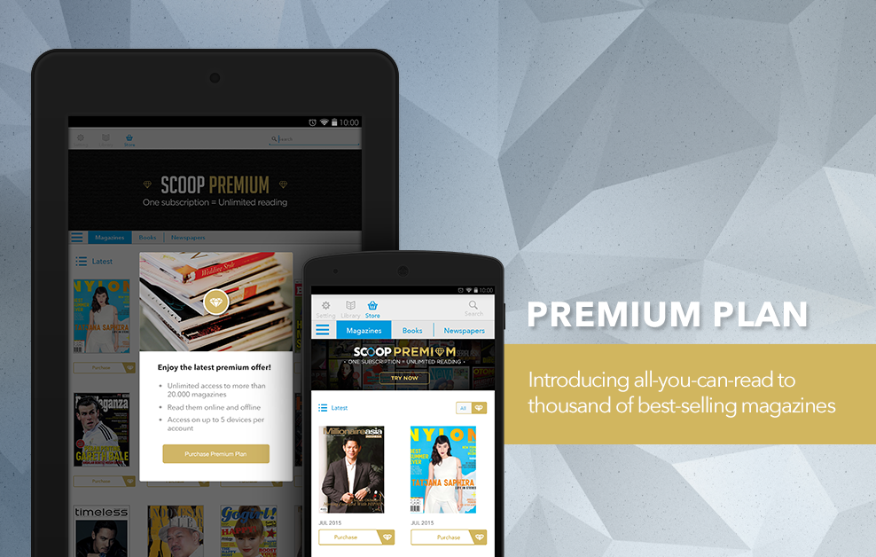 Memangnya apa bedanya antara akun Premium dan yang tidak? Hampir serupa dengan Spotify, mereka yang terdaftar sebagai pengguna Premium akan mendapatkan banyak keuntungan. Kalau di Spotify, pengguna Premium terbebas dari iklan dan bisa memainkan lagu favorit mereka kapanpun dimanapun, kalau SCOOP bentuk privilege-nya berupa banyaknya buku yang bisa dibaca.